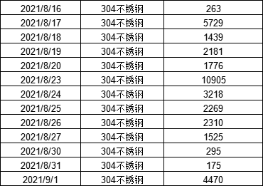 9月1日電子盤(pán)不銹鋼交收數(shù)據(jù)